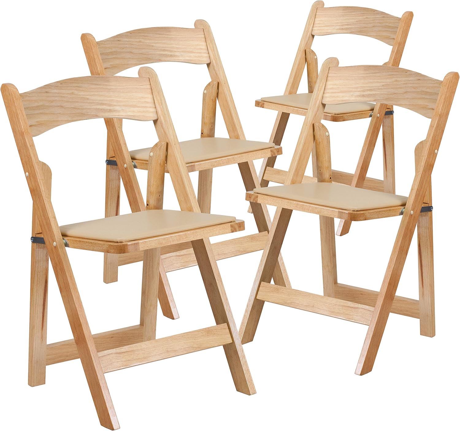 Flash Furniture Hercules Series Beechwood Folding Event Chairs with Padded Seats, Modern Wooden Folding Banquet Chairs, Set of 4, Natural