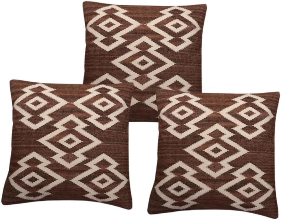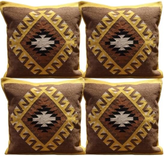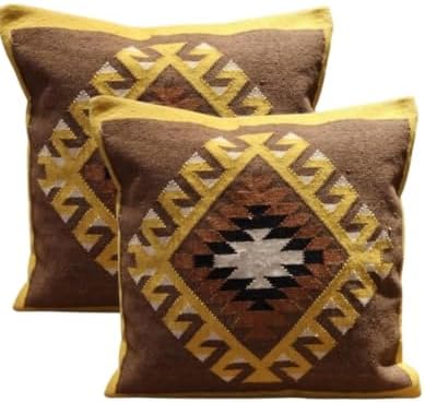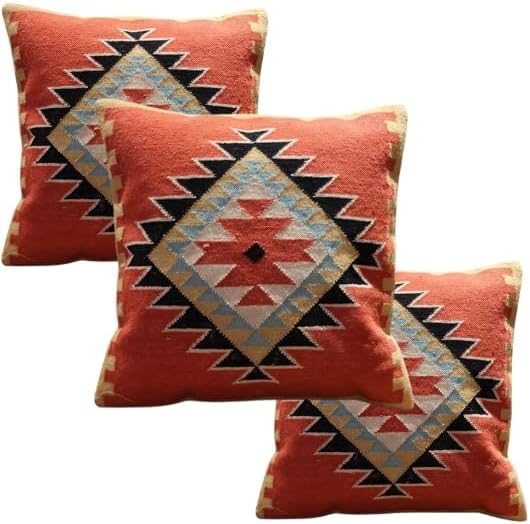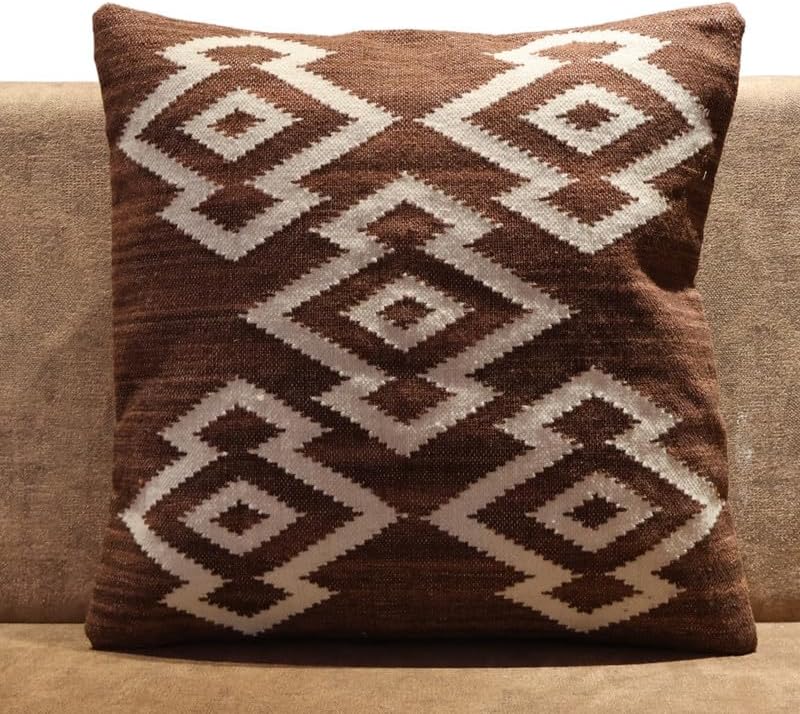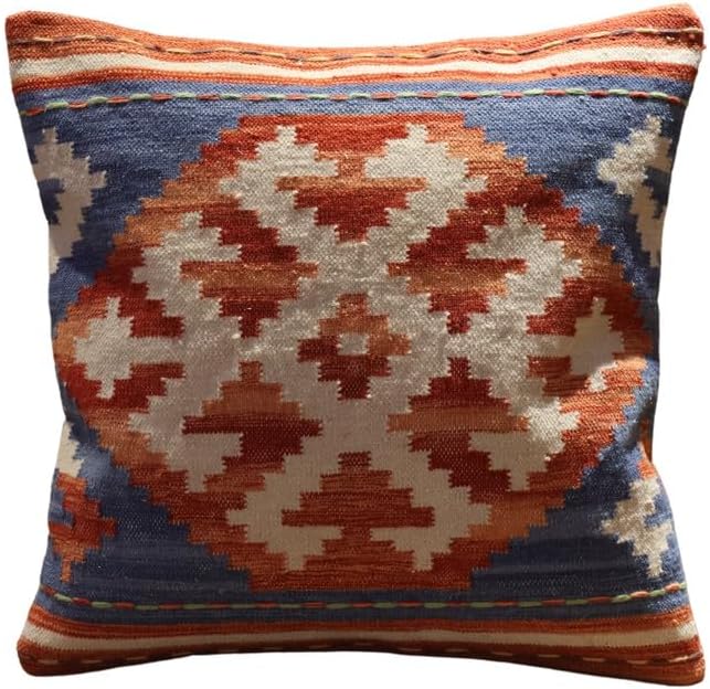 Handmade 100% Wool Kilim Pillow Cover – 18x18 Inches, Durable Indian Cushion Case, Premium New Zealand Wool for Home Decor (Orange, Pack of 1)