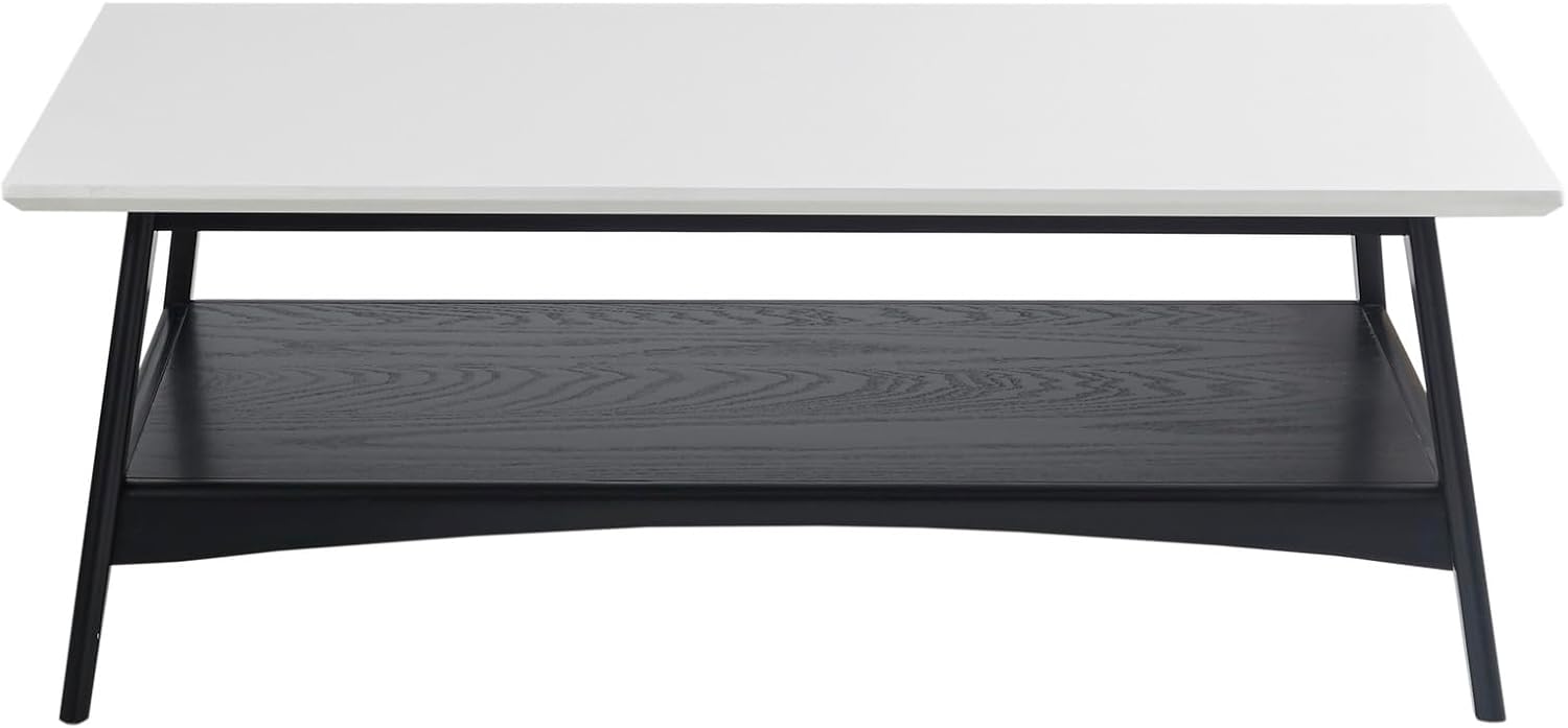 Avenu brings a fresh look, make a bold statement with our Off-White tops on simple yet classic Mid century frames. Complete with a lower shelf in pecan finish. Assembly required.