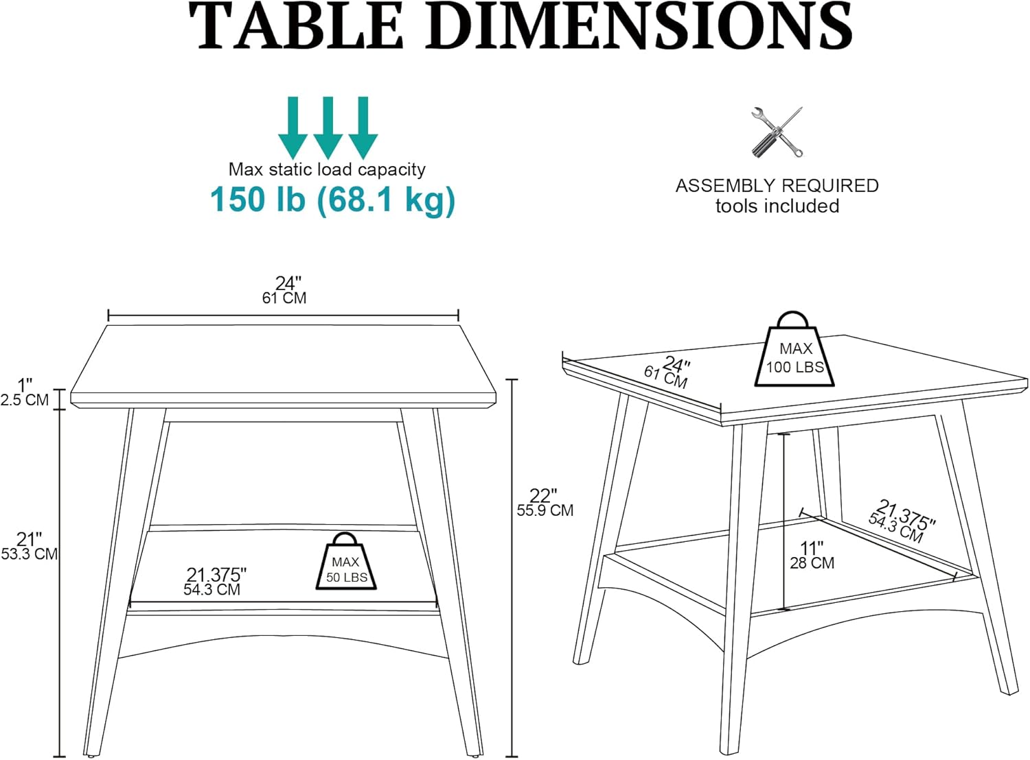 Madison Park Parker End Tables-Solid Wood, Two-Tone Finish with Lower Storage Shelf Modern Mid-Century Accent Living Room Furniture, Medium, Off-White/Pecan